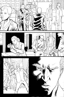 I'm trying to get my shit-stick back(I'm sure there is a better word for it but I can't bother to remember). My artwork has been lacking that critical eye(that was the word). I was good sometimes and other times, not so much. So I had to get my shit-stick back and make myself work harder and be more consistant and not let bad panels happen. These two pages were an attempt. I think I can still do better, but this is consistant and it was done in a timely manner so I'm happy. I'll be inking these over the next two days. Oh, those empty panels on the first page are where I have to repeat a panel except for a few differences.